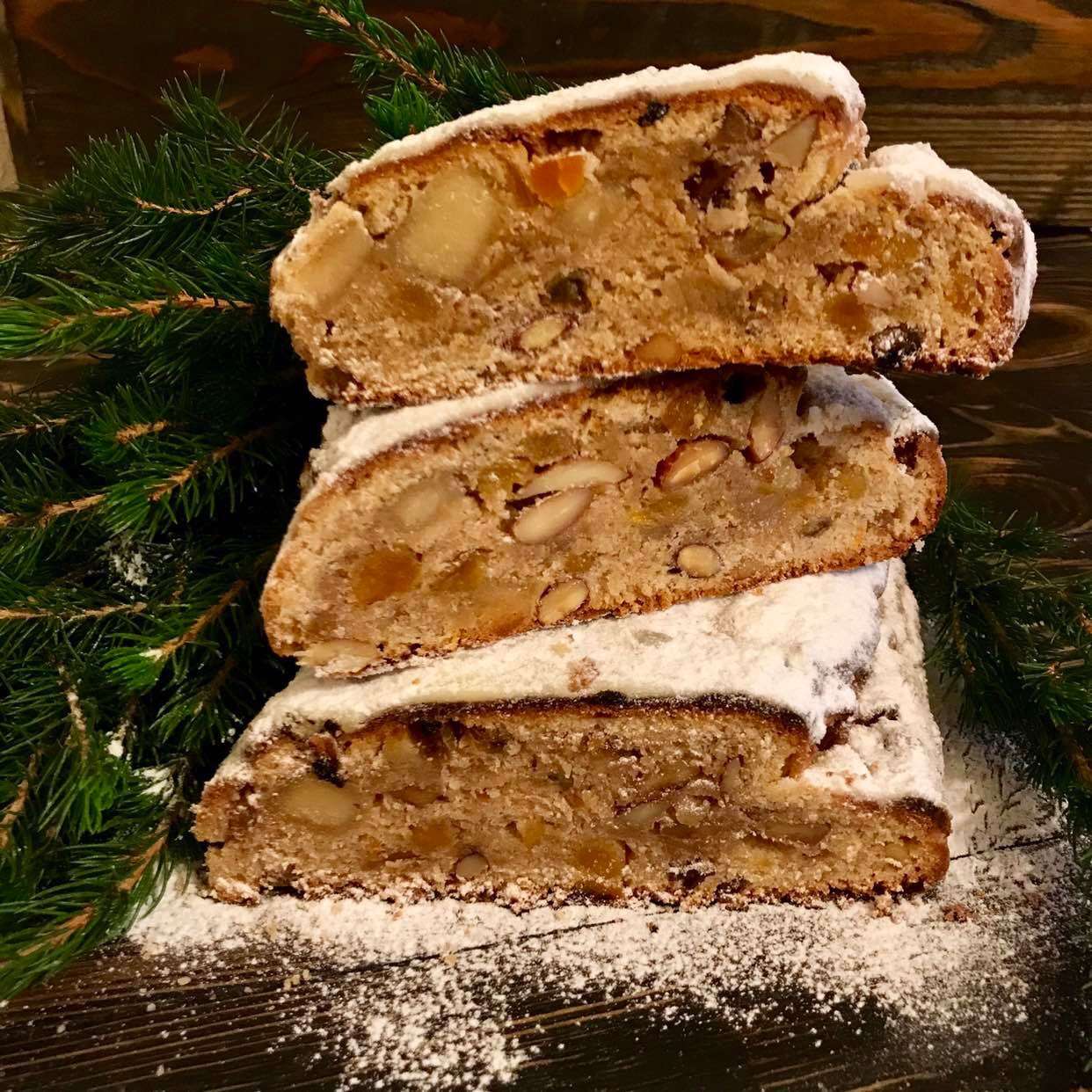 Штоллен — це кекс подовженої форми, наповнений неймовірною кількістю прянощів, родзинок, горіхів, цукатів і щедро посипаний цукровою пудрою. Найчастіше його асоціюють з новонародженим Ісусом, загорнутим у білу пелюшку.