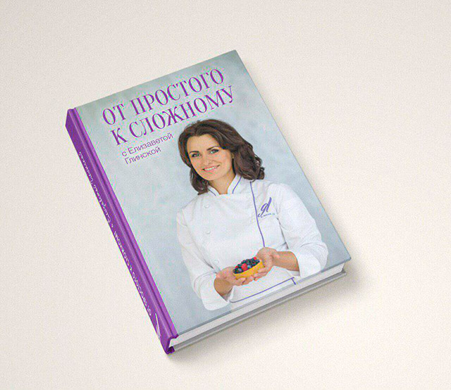 - Книга «От простого к сложному с Елизаветой Глинской» - про кондитерське мистецтво, значить, «стояти ти повинна в білому кітелі, корпоративний колір - бузковий, значить, приліпимо його обов'язково, логотип потрібно теж..