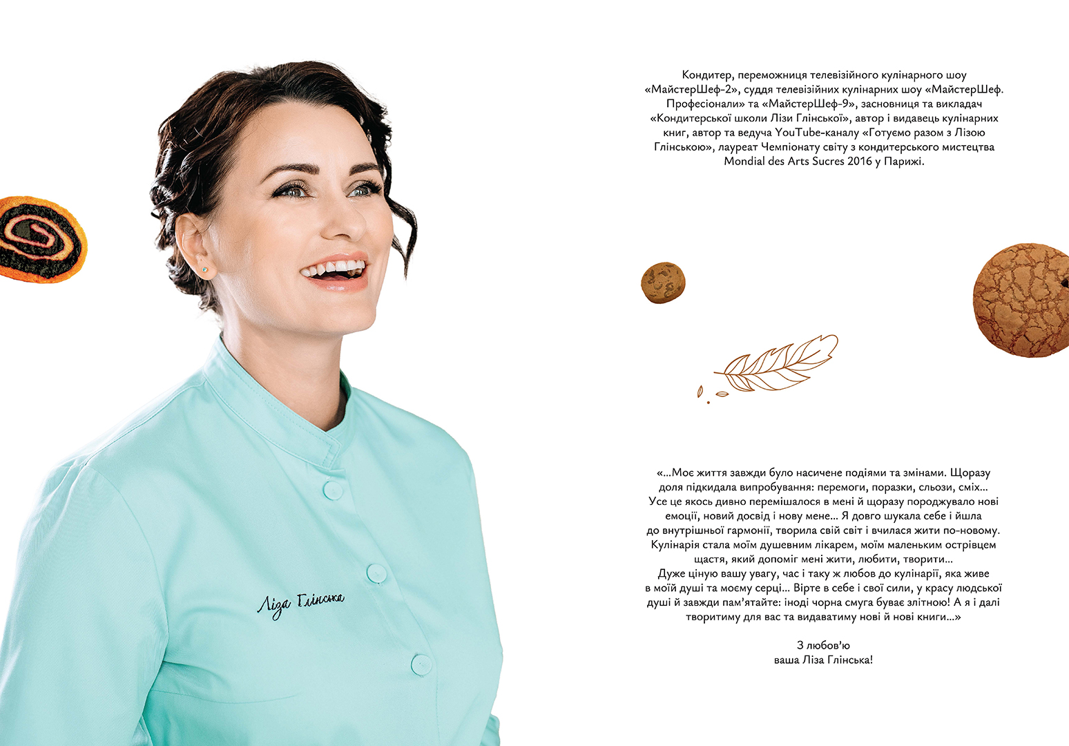 Завдяки вам я і моя команда маємо змогу розпочати новий проєкт - «Ліза Глінська. Школа десертів». Журнал «Печиво» - це початок, а далі на вас чекають: мусові торти, бісквіти, креми, тарти, чизкейки, макарон, французька класика, всесвітньо відомі торти, корисні десерти, колекція зефіру, цукерок та мармеладу, капкейки, десерти для дітей, сніданки… І ще дуже багато цікавого.