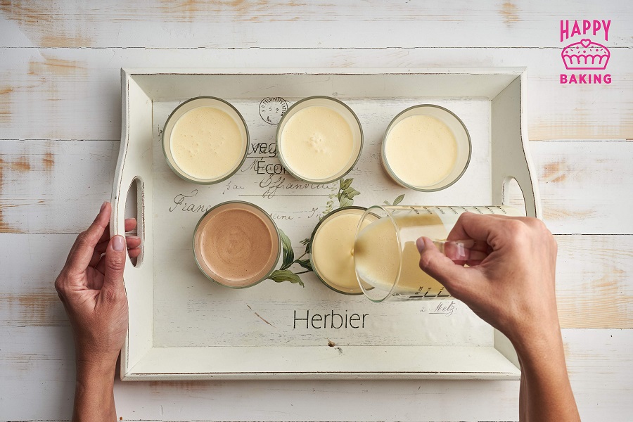 Подготавливаем баваруа на белом шоколаде, заливаем на охладившийся слой баваруа на молочном шоколаде, убираем в холодильник на 5-6 часов — именно столько времени понадобится желатину для полной стабилизации. Десерт «Три шоколада» готов!