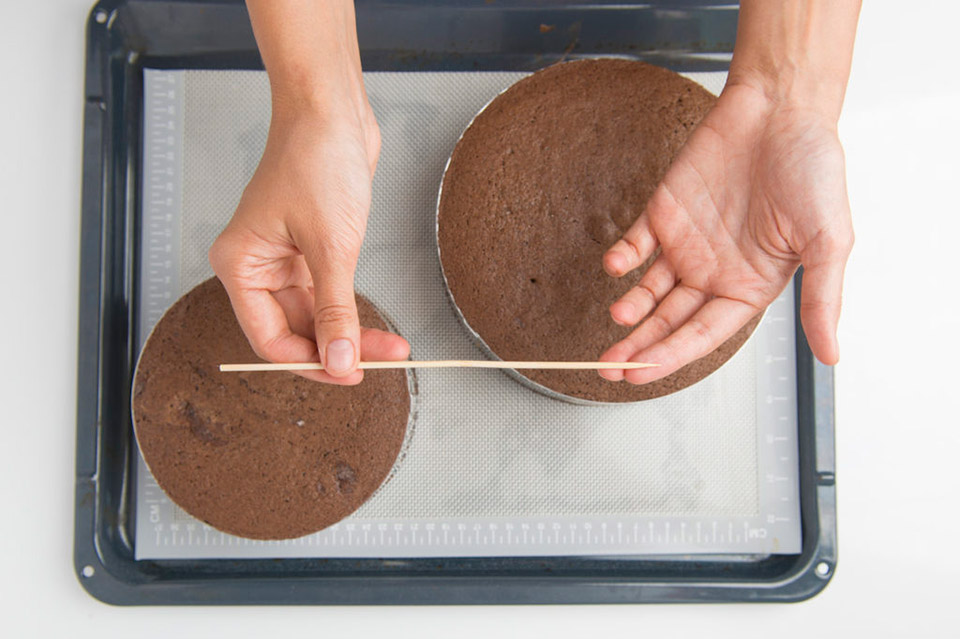 Готовность бисквита проверяем деревянной шпажкой или зубочисткой. Протыкаем ею бисквит посередине. Шпажка должна выйти абсолютно сухой, без крошек бисквита. Прежде, чем вынуть бисквит из формы, дайте ему полностью остыть.
