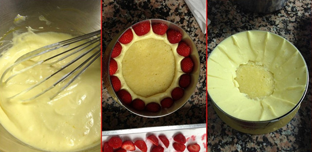 Декорируем торт «Фрезье» клубникой. Металлическую форму снимаем уже непосредственно перед подачей. Клубничный торт «Фрезье» готов!
