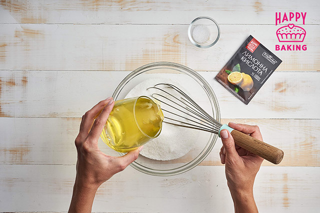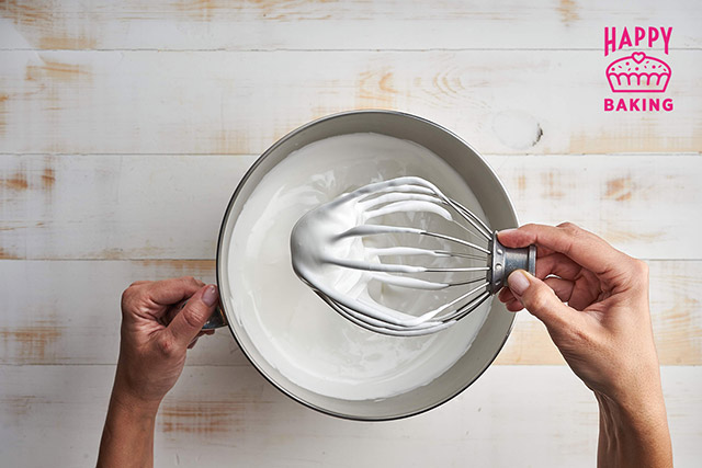 Готовим меренгу. Соединяем белки с сахаром и лимонной кислотой «Happy Baking» в миске, помешивая доводим на паровой бане до растворения сахара, температура 55-60⁰С.