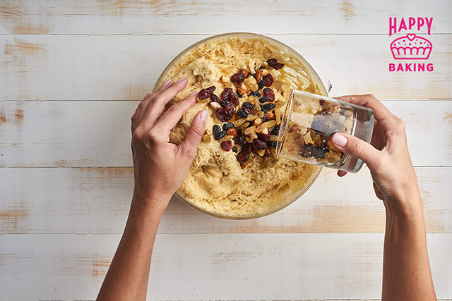 Изюм, орехи, цукаты, напитанные сиропом, не будут забирать влагу из теста.