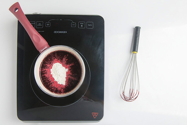 Готовим ягодную начинку. Соединяем ягодное пюре с сахарной пудрой и крахмалом.