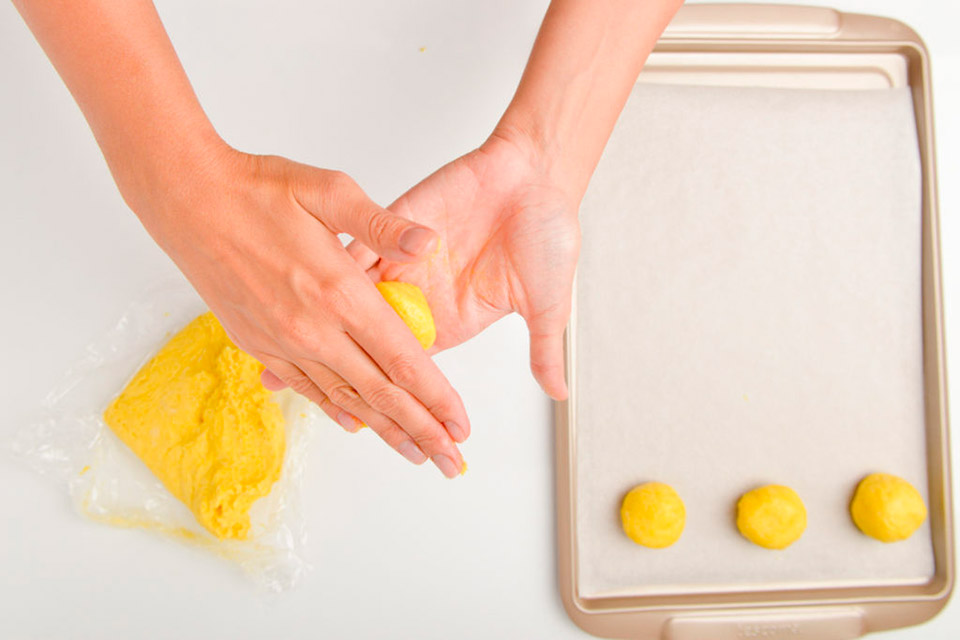 Из остывшего теста формируем небольшие шарики, укладываем их на пергамент.