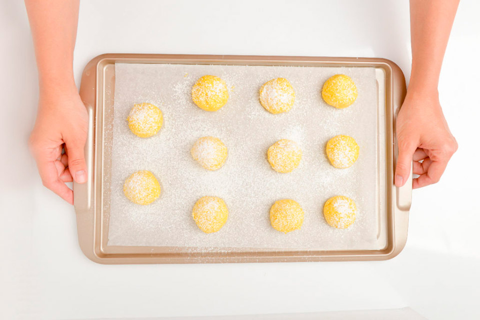 Печенье будет немного расти, поэтому необходимо оставить небольшое расстояние между шариками.