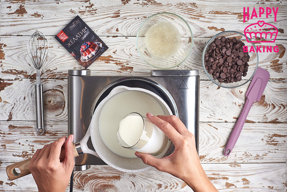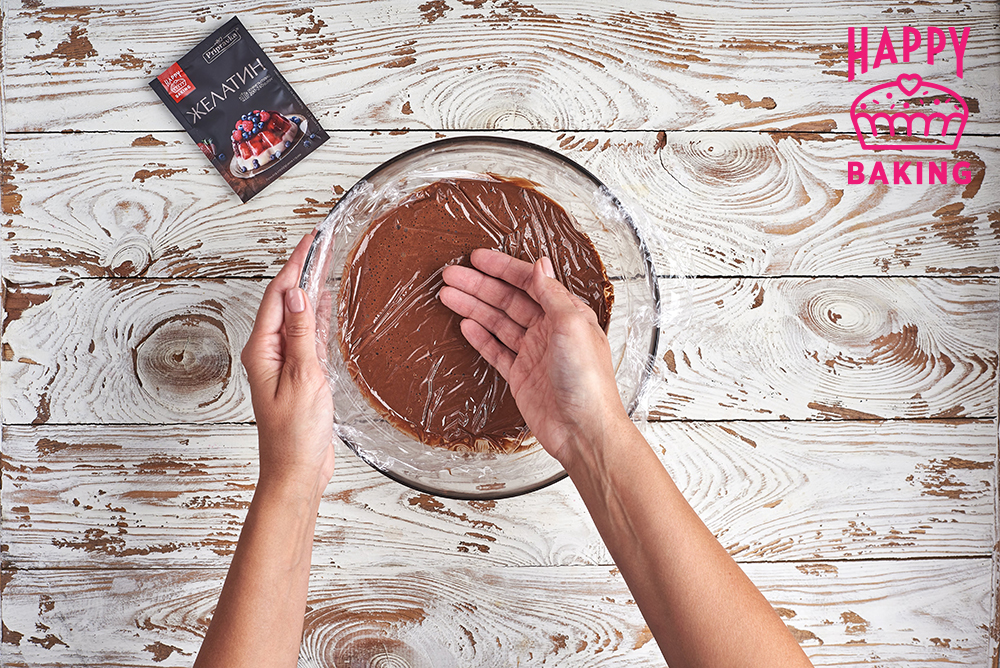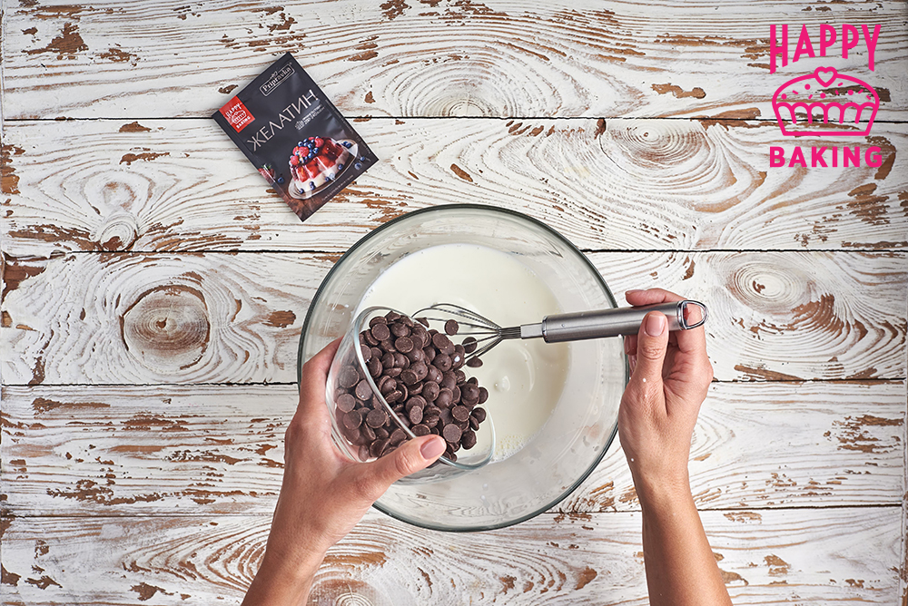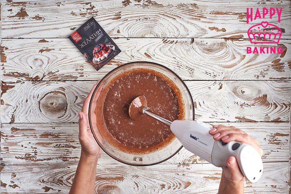 Для приготовления шоколадного мусса замачиваем желатин в воде комнатной температуры (1:5), оставляем на 10-15 минут, чтобы желатин набух.