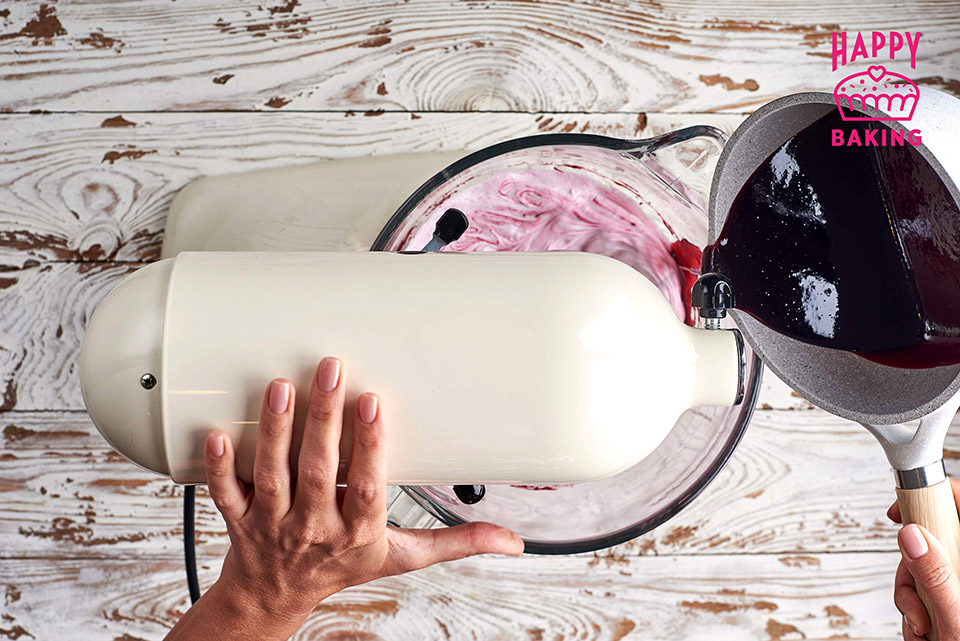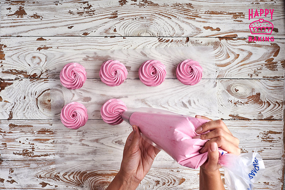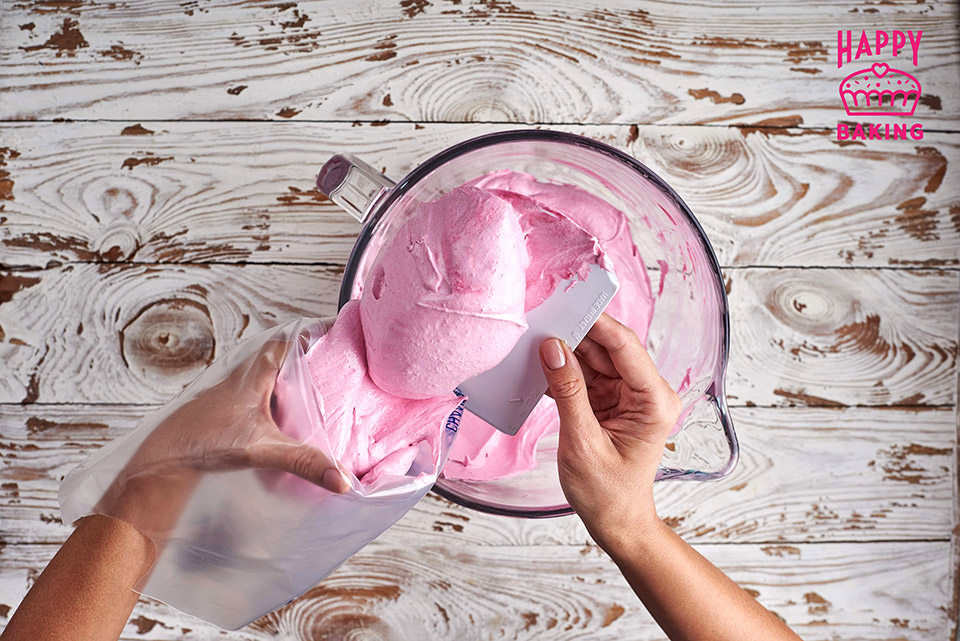 Продолжаем взбивать. Масса должна увеличиться в объеме, стать плотной ип стойкой. Когда онга достигнет температуры не ниже 40 градусів (она будет немного теплой) и хорошо держать форму, переложить ее в кондитерский мешок с насадкой «Закрытая звезда» 10 мм.