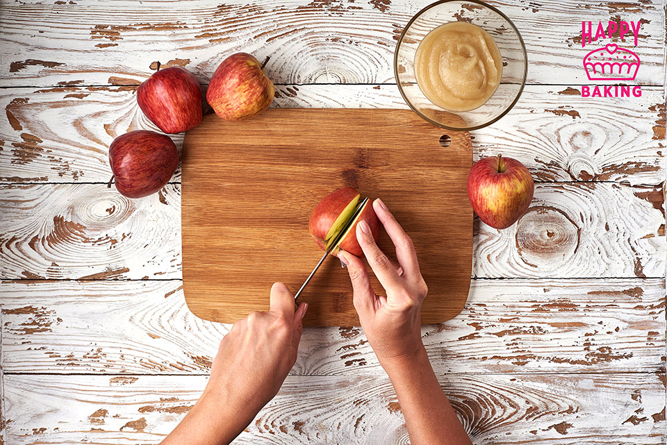 Готовим яблочное пюре. Очищаем яблоки от кожуры и семечек, нарезаем небольшими кусочками, ставим в микроволновку. Запекаем. Пробиваем погружным блендером до однородной консистенции и протираем через сито. Убираем подготовленное пюре на ночь в холодильник, чтобы пектин стабилизировался.