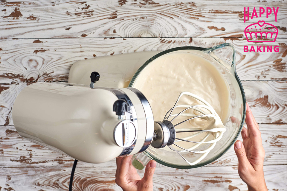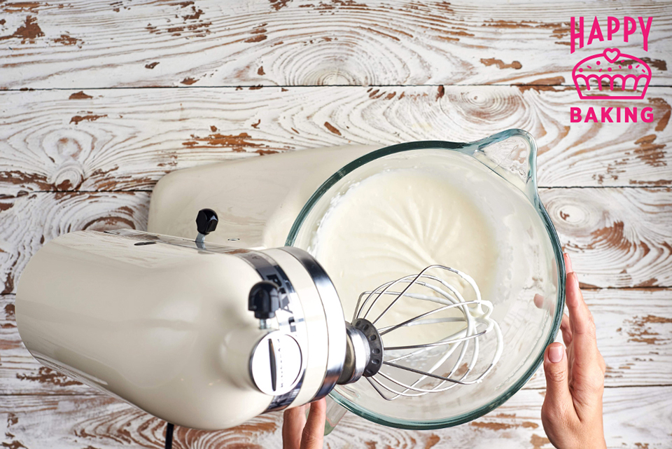 Хорошо взбиваем в комбайне на протяжении 7-10 минут. Масса должна быть пышной и воздушной, максимально плотной.