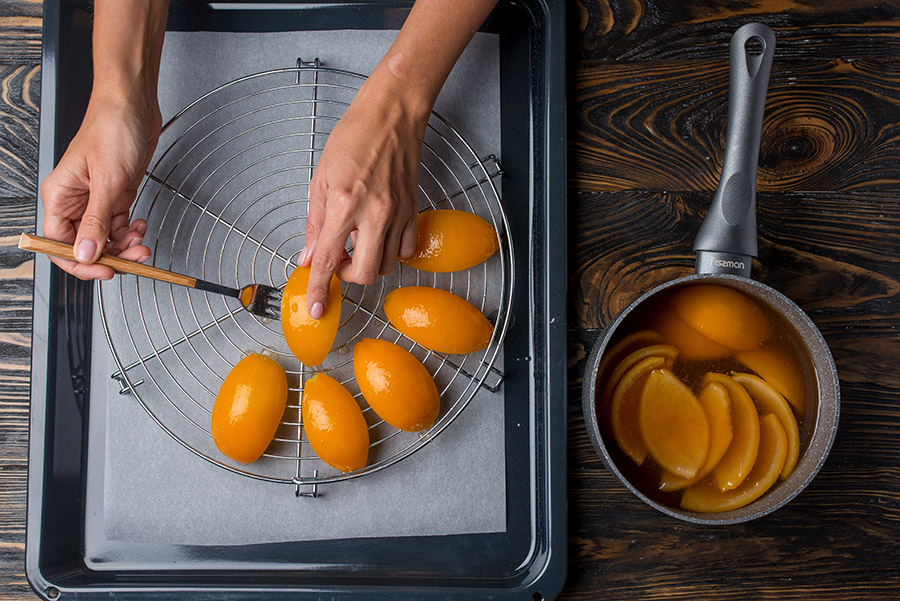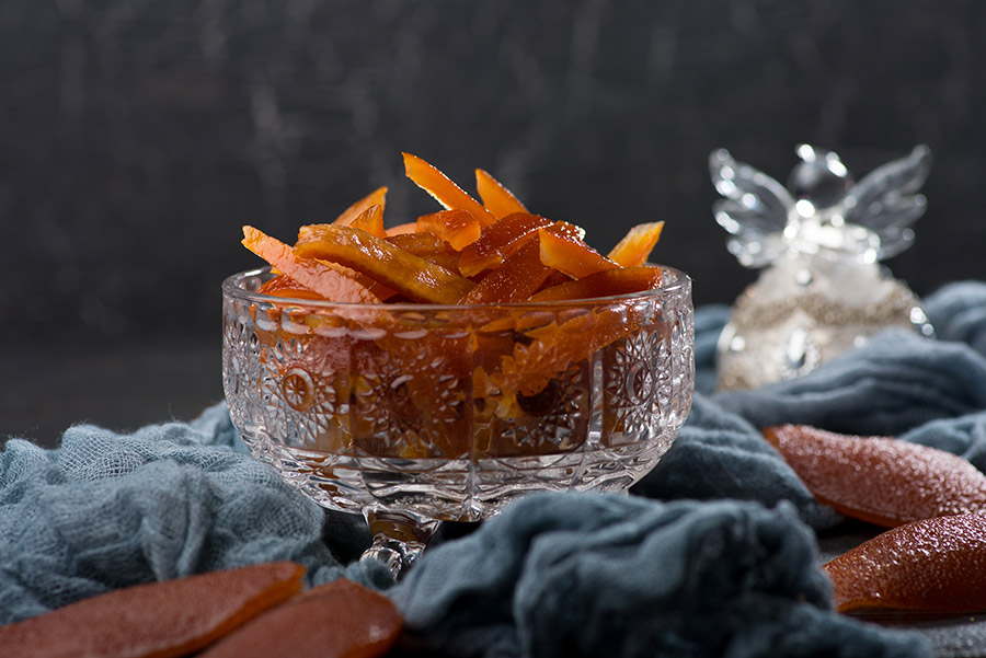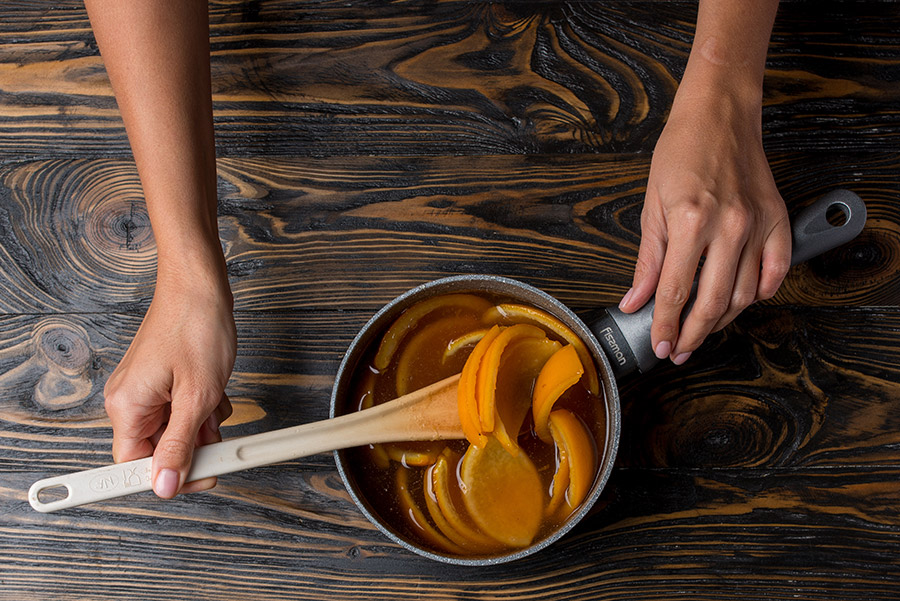 Кожура должна пропитаться сиропом и стать прозрачной.